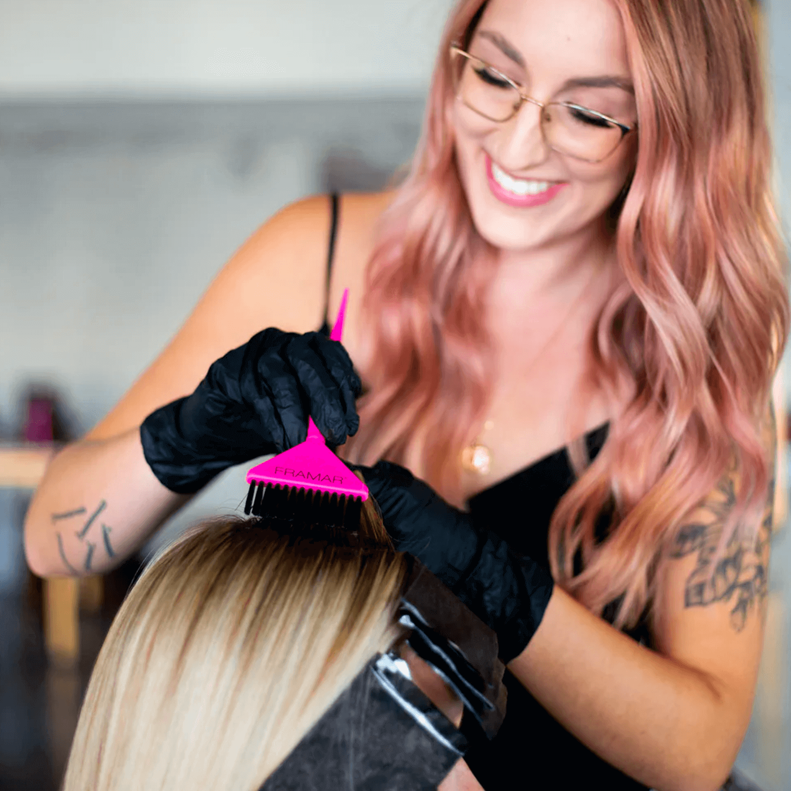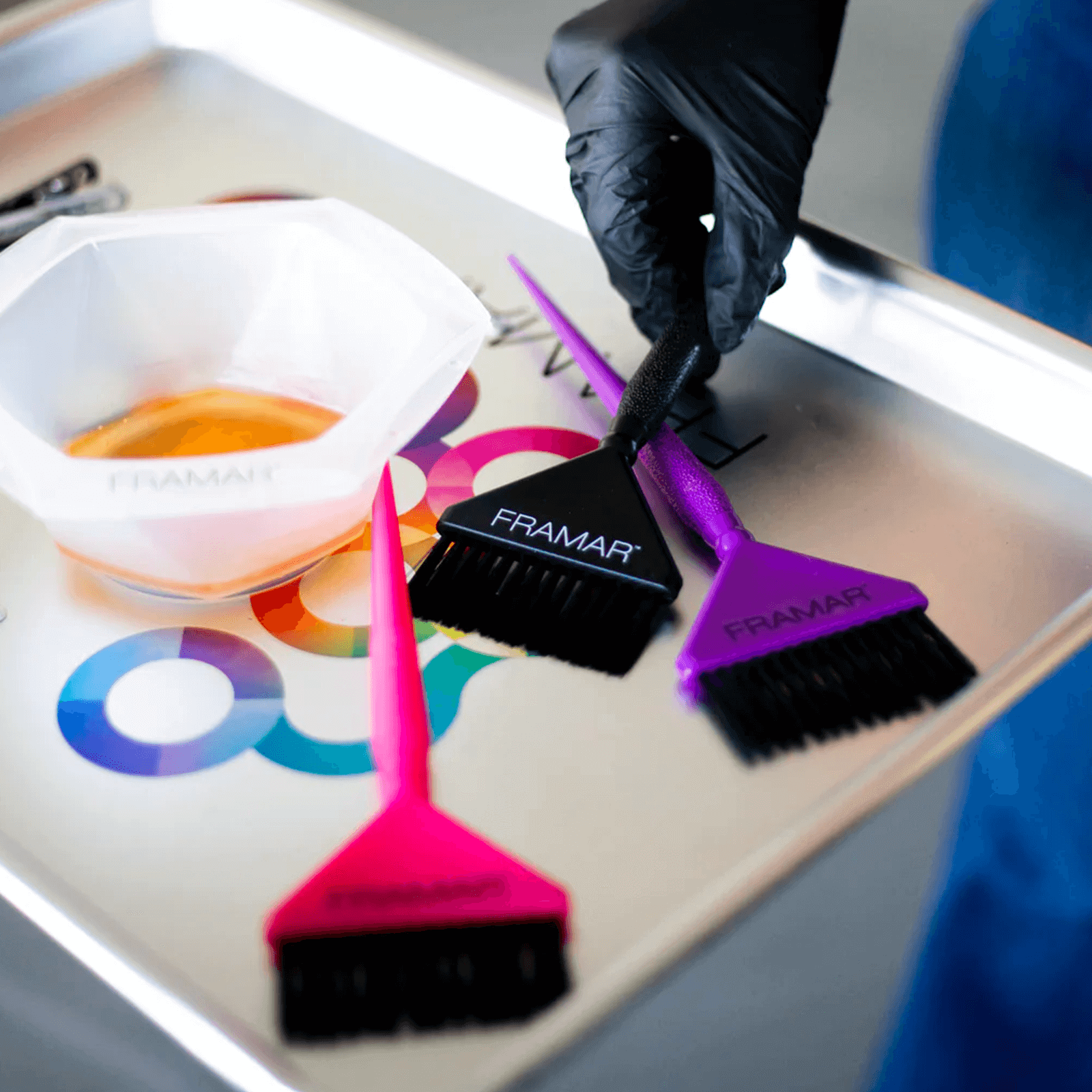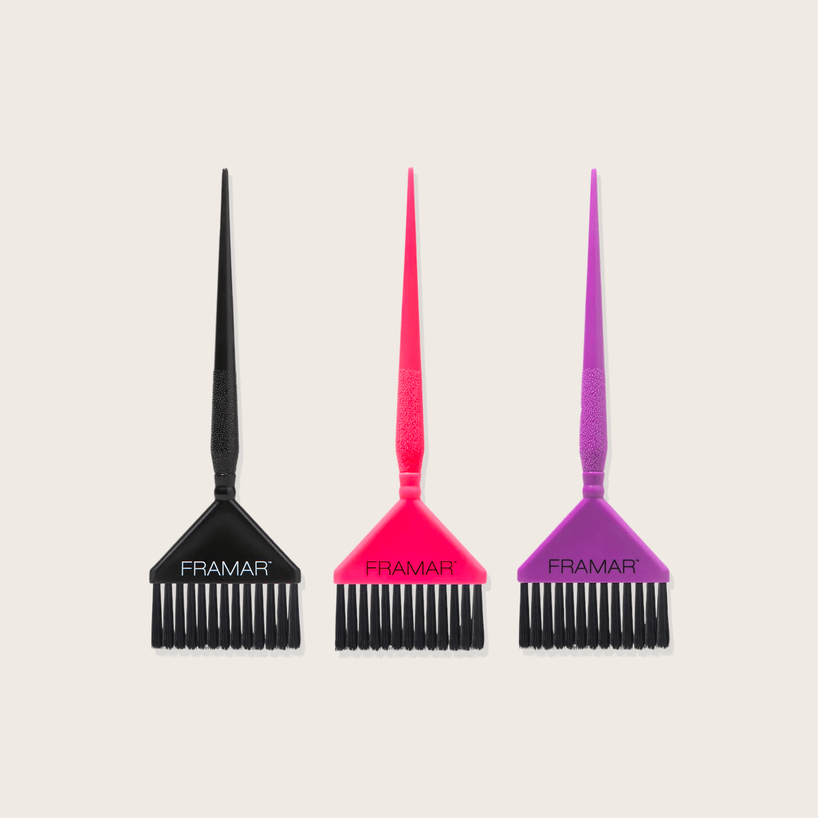 Les célèbres poils AccuSoft de Framar sont effilés pour capter et répartir la couleur sur les cheveux de manière uniforme, rapide et précise