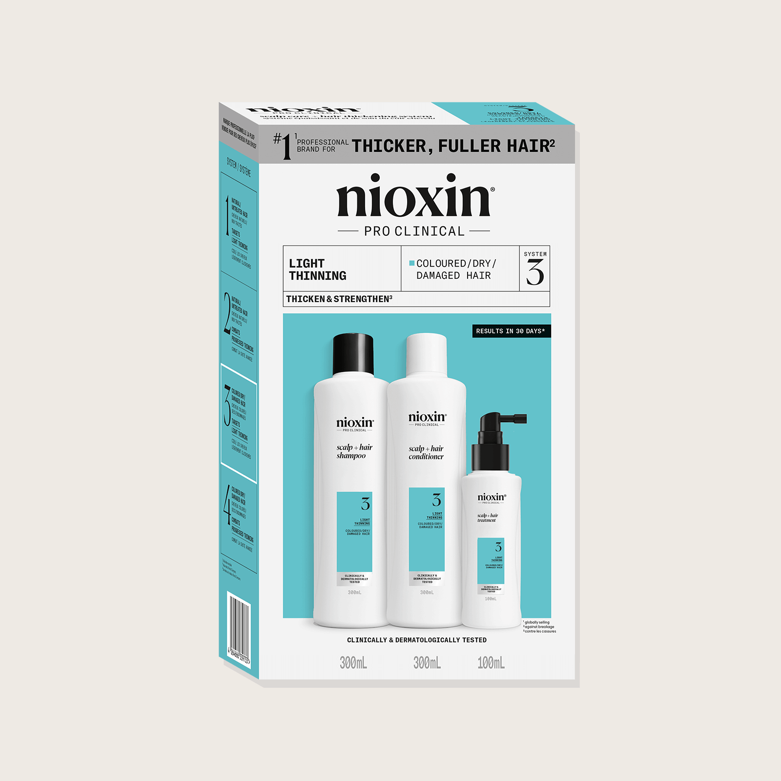L'ensemble de traitement par excellence de Nioxin pour traiter vos cheveux normaux cheveux normaux, fins, naturels ou d’apparence clairsemée! Comprend le shampooing "Cleanser", le revitalisant "Scalp Therapy" et le traitement de cuir chevelu.