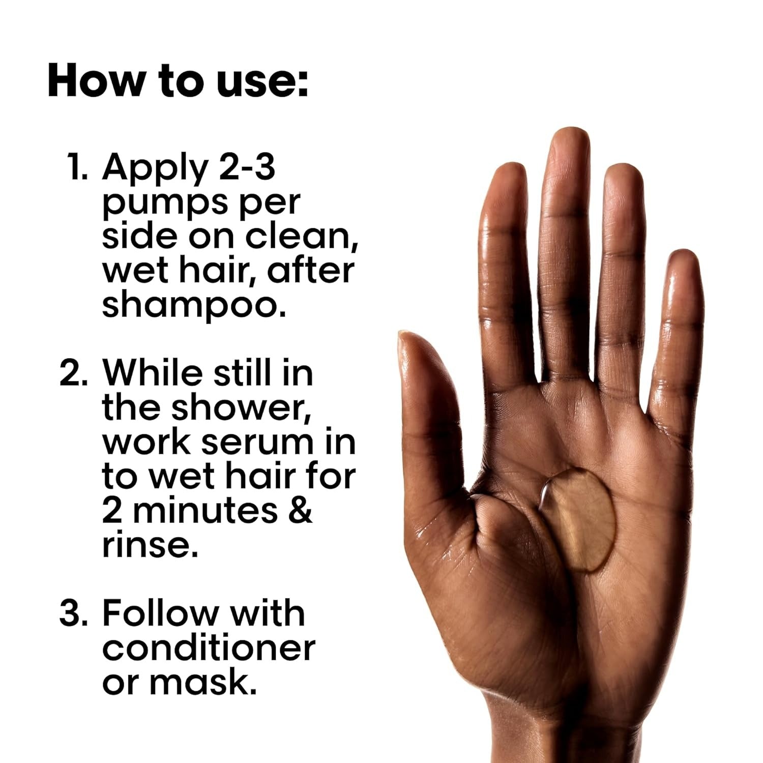 Step 3 – Apply Rinse-Off Serum to towel-dried hair, leave for 1–2 minutes, and rinse
